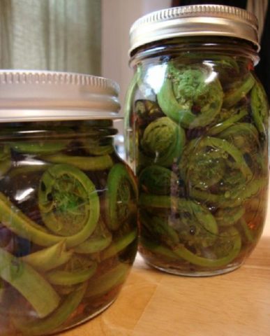 Sie können den in Gläsern geernteten Farnfarn aufbewahren, indem Sie ihn bis zu einem Jahr bei Temperaturen unter 0 einlegen. Dies sollte an einem dunklen Ort erfolgen. Es ist wichtig, dass die Rachisen in den Gläsern vollständig mit Marinade bedeckt sind.