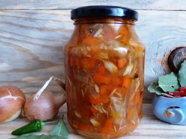 Nach einem einfachen Rezept kann diese hausgemachte Zubereitung für den Winter zum Mittag- und Abendessen mit einer Beilage oder als kalter Snack präsentiert werden. Würde brauchen: