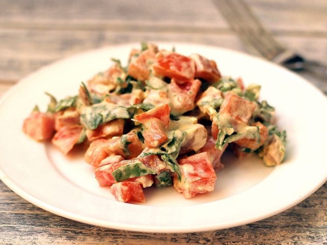 Eine Auswahl an Gemüse verleiht dem Salat einen sommerlichen Geschmack, und der Fisch verleiht ihm eine besondere Pikantheit. Eine ausgewogene Zubereitung nach diesem Rezept wird den Hunger schnell stillen. Sie kann als Dressing für eine Suppe, als Füllung für ein geschlossenes Sandwich oder als Torte verwendet werden. Um es zuzubereiten, sollten Sie sich mit folgenden Zutaten eindecken: