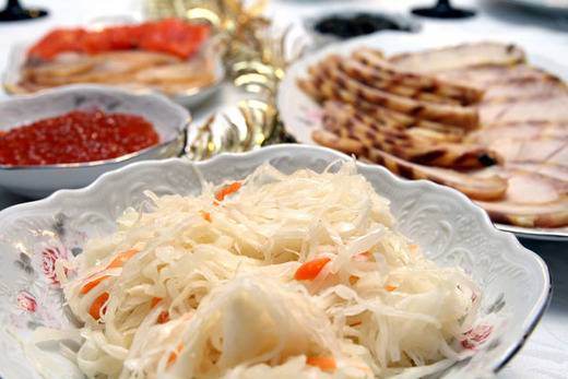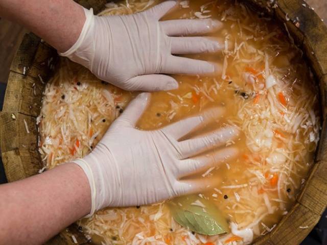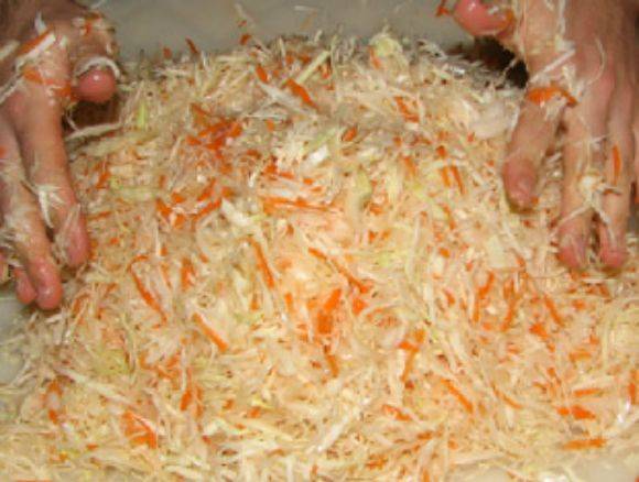 Bereits am zweiten Tag erscheint nach dem Rezept der Großmutter Schaum auf dem Kohlsauerkraut. Es muss gesammelt werden, und die Kohlernte selbst für den Winter muss mehrmals täglich auf den Boden gestochen werden, damit Gase austreten. Andernfalls tritt ein unangenehmer Nachgeschmack auf. Der Geruch verschwindet, wenn der Fermentationsprozess beendet ist.