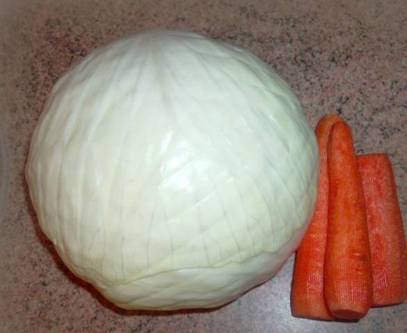 - Entfernen Sie die oberen Blätter von den Kohlköpfen und reinigen Sie sie von den geringsten Schäden. Um ein Gemüse nach dem Rezept der Großmutter zu fermentieren, hängen wir die Hauptzutat in geschälter Form auf, da wir anhand des Gewichts die restlichen Zutaten bestimmen. Salzmangel führt zum Auftreten von Schimmel, Überschuss - macht ihn unbrauchbar.