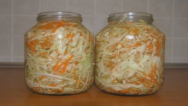 Anfänglich Sauerkraut in Holzfässern. Glas eignet sich auch für die Gärung zu Hause. Banken, seltener werden Plastik- oder emaillierte Schalen verwendet. Für den Winter werden Fermentationsrezepte unter Berücksichtigung der Zutaten und des Fermentationszeitpunkts ausgewählt.