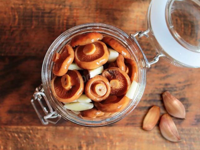 Die trockene Methode zum Salzen von Safranmilchkappen mit Knoblauch besteht darin, einen herzhaften Snack zuzubereiten, der sogar auf einem festlichen Tisch serviert werden kann.