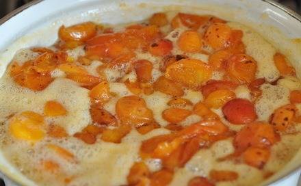 Zunächst wird etwa 1/3 der im Rezept vorgeschriebenen Gesamtzuckermenge zu den Fruchtscheiben gegeben. Die Aprikosen werden zum Kochen gebracht. Nach 10-15 Minuten wird das zweite Drittel des Zuckers zur Fruchtmasse gegeben. Die Aprikosen werden weitere 20 bis 30 Minuten gekocht und der Rest des Zuckers wird hinzugefügt. Danach kann das Werkstück weitere 5-10 Minuten gekocht und heiß in den Gläsern verteilt werden.
