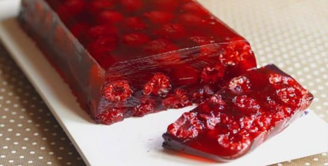 Himbeergelee liefert viele Nährstoffe für die Ernährung. Indem Sie es zu Ihrer täglichen Ernährung hinzufügen, können Sie Ihre Immunität unsichtbar stärken, ohne besondere Anstrengungen zu unternehmen. Sie können helle Himbeer-Geleestücke auf ein Butterbrötchen oder einen Toast legen, darauf süßes Gebäck oder Desserts herstellen. Die antiseptischen Eigenschaften von Beeren schützen während der kalten Jahreszeit vor Viren und Erkältungen.