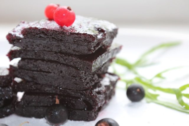 Pastila mit schwarzen Johannisbeeren ist ein vielseitiges Gericht. In Keile geschnitten, dient es als ausgezeichnete Teespezialität. Es wird als Zwischenschicht und Dekoration für Kuchen verwendet und anstelle von Marmelade zu Eis hinzugefügt. Auf der Basis von saurem Marshmallow werden Saucen für Fleisch zubereitet und köstliche Marinaden aus eingeweichten Köstlichkeiten gewonnen. Daher sollte während des Ernteprozesses ein Teil des Marshmallows süß und der andere sauer gemacht werden.