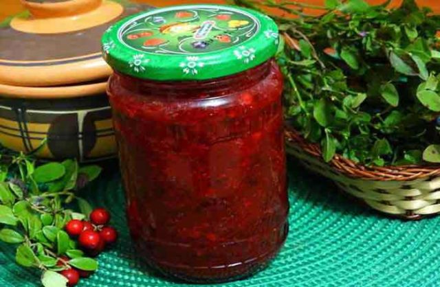 Aus Preiselbeeren kann eine Vielzahl von Rohlingen hergestellt werden. Zuallererst Marmelade. Alles wird nach dem klassischen Rezept gemacht: aussortieren, pürieren, Zucker hinzufügen, kochen und in sterilisierte Gläser füllen. Und auch viele Hausfrauen kochen für den Winter Kompott aus nördlichen Beeren. In Geschmack und Nährstoffeigenschaften unterscheidet es sich nicht von Cranberrysaft. Und lindert auch perfekt Hitze und Töne.