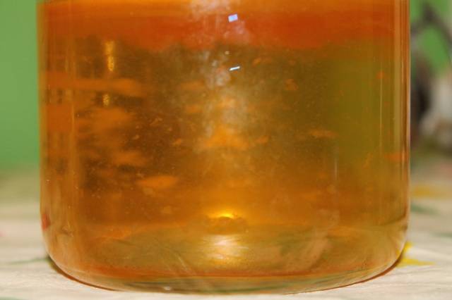 - Das Getränk ist fertig. Das Öl wird entweder in Flaschen belassen oder abgelassen.