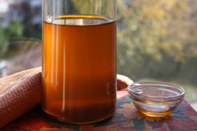 - Bestehen Sie einen Monat lang an einem dunklen Ort, filtern Sie und fügen Sie Honig hinzu, um zu schmecken.