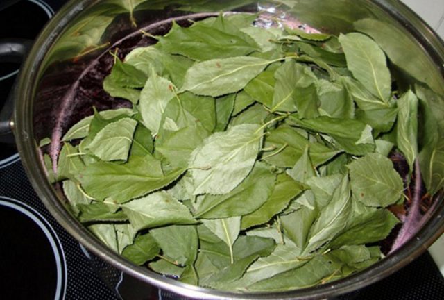 Die Blätter von Sträuchern und Obstbäumen verleihen den Aronia-Tinkturen ein Beerenaroma, obwohl sie im Spätherbst zubereitet werden, wenn die Saison vorbei ist. Kirsch- und Himbeerblätter können im Voraus geerntet und getrocknet verwendet werden. Die besten Ergebnisse werden jedoch mit frischen Rohstoffen erzielt.