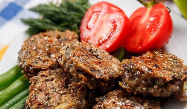 Das Gericht enthält 0,5 kg Honigagar, 0,5 kg Hackfleisch, 3 Zwiebeln, 2 Eier, Salz und Gewürze.