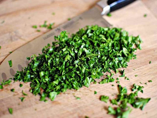 - Die gehackte Zwiebel in die Masse geben (1 mittlerer Kopf).