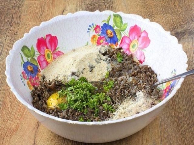 Hackfleisch sollte in der Pfanne nicht auseinander fallen. Zu diesem Zweck enthalten die Rezepte häufig Eier, die die Pilzmasse zusammenkleben. Schnitzel behalten ihre Form, wenn Sie Getreide hinzufügen - Grieß, Haferflocken, Reis oder Kartoffelpüree.