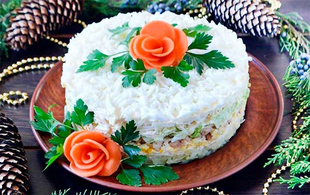 Dieses Gericht sieht so schön und appetitlich aus, dass es zu jeder Mahlzeit ein echter Hit werden kann. Oft servieren es Hausfrauen am Neujahrstisch.