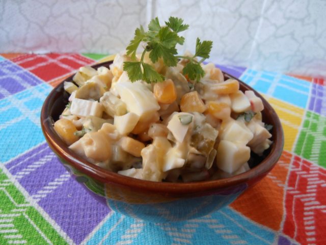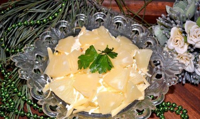 - 5 Festlicher Salat aus gesalzenen Milchpilzen, Ananas und Käse