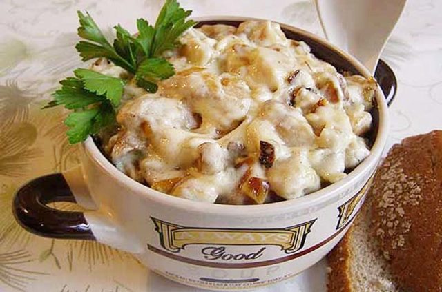 Gebratene Pfifferlinge in Sahne und Käse sind ein doppeltes Vergnügen. Der Käse verstärkt den cremigen Geschmack und verleiht diesem Gericht Geschmack. Sie können dieses Gericht nach einem einfachen Rezept zubereiten. Es müssen jedoch einige Anpassungen vorgenommen werden. Bevor Sie die Sahne in die gebratenen Pilze gießen, fügen Sie geriebenen Hartkäse hinzu. Gießen Sie dann die Pilzmischung mit dieser Mischung und bringen Sie sie bei minimaler Hitze etwa 5 Minuten lang in Bereitschaft, ohne das Rühren zu vergessen.