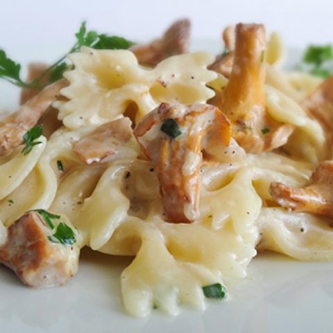 Ein einfaches Rezept für Pfifferlinge mit Sahne in einer Pfanne