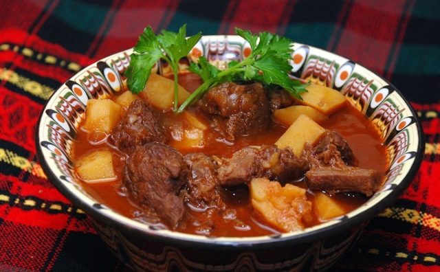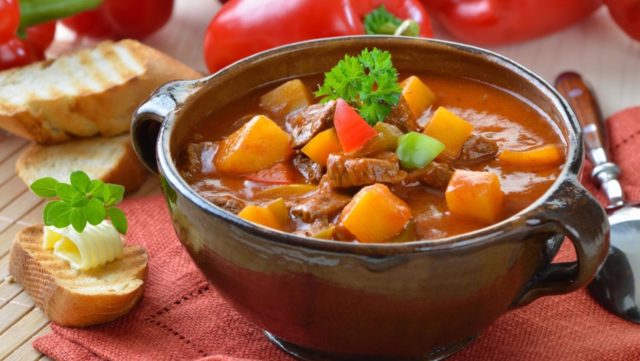 Dieses traditionelle europäische Gericht entstand vor Jahrhunderten als Hirtensuppe. Zu den ursprünglichen Zutaten gehören Kartoffeln, Rindfleisch und Paprika. Im Laufe der Zeit kamen kulinarische Experten zu dem Schluss, dass Schweinefleisch das Endergebnis zarter und ausgewogener macht.