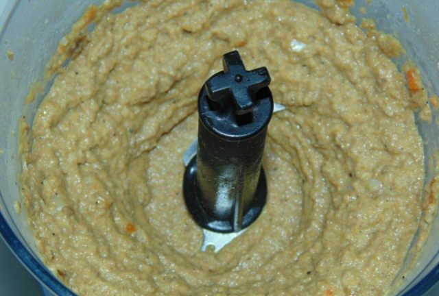 - Kombinieren Sie die Zutaten in einem Behälter und mahlen Sie für einen Pilzsnack mit einem Mixer.