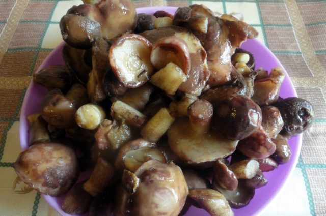 Die Methode zum Kochen von Öl zum Einfrieren in gebratener Form ist länger, aber die kompakteste. Beim Braten verdunstet das Wasser aus den Fruchtkörpern vollständig und es verbleiben etwa 2/3 des Gesamtvolumens. Die Methode wird mit einer großen Sammlung verwendet.